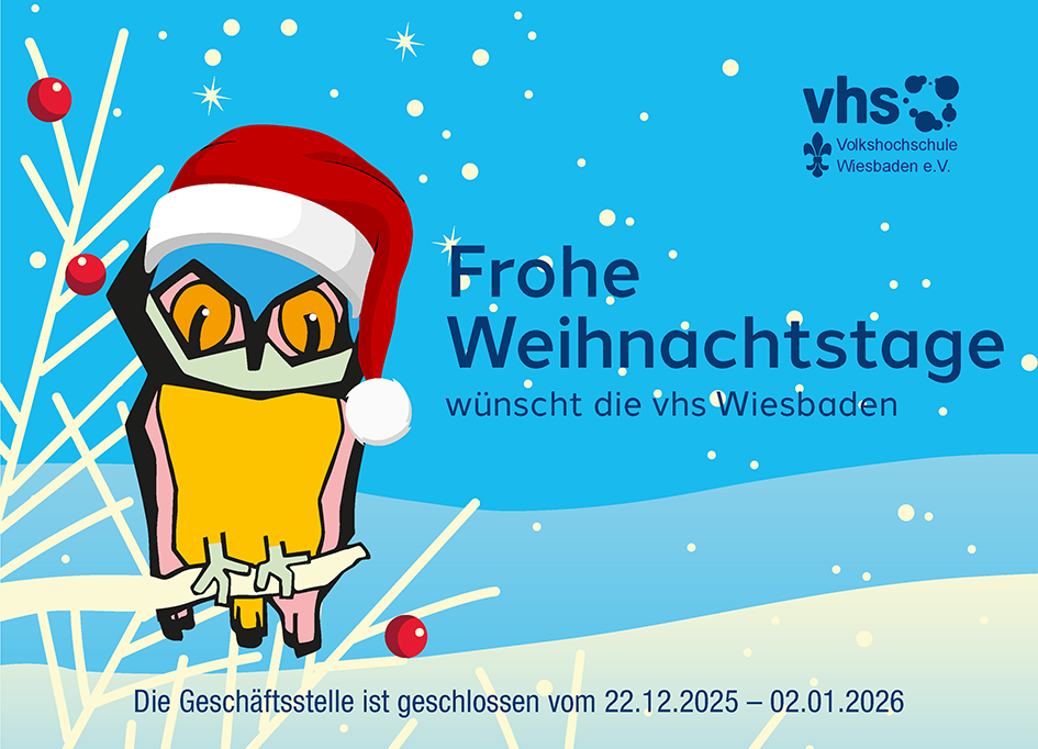 Das Programm 1/2026 (Programmheft-PDF) ist da! Die Kurse sind Online buchbar, das Heft liegt an den Häusern der vhs aus.